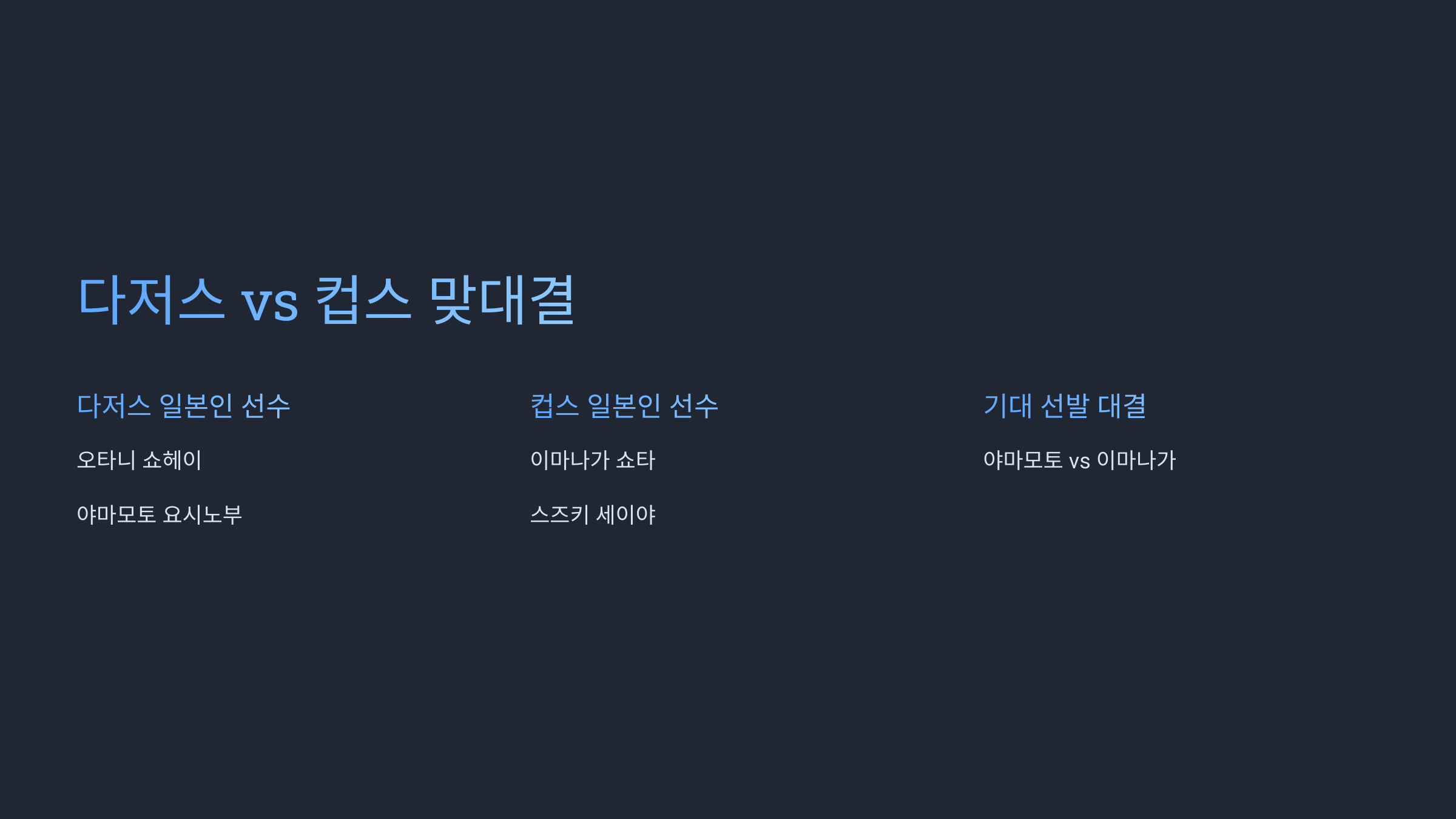 | 오타니 쇼헤이 | 지명타자 | 타율 .290 / 홈런 35개 / OPS .950 |