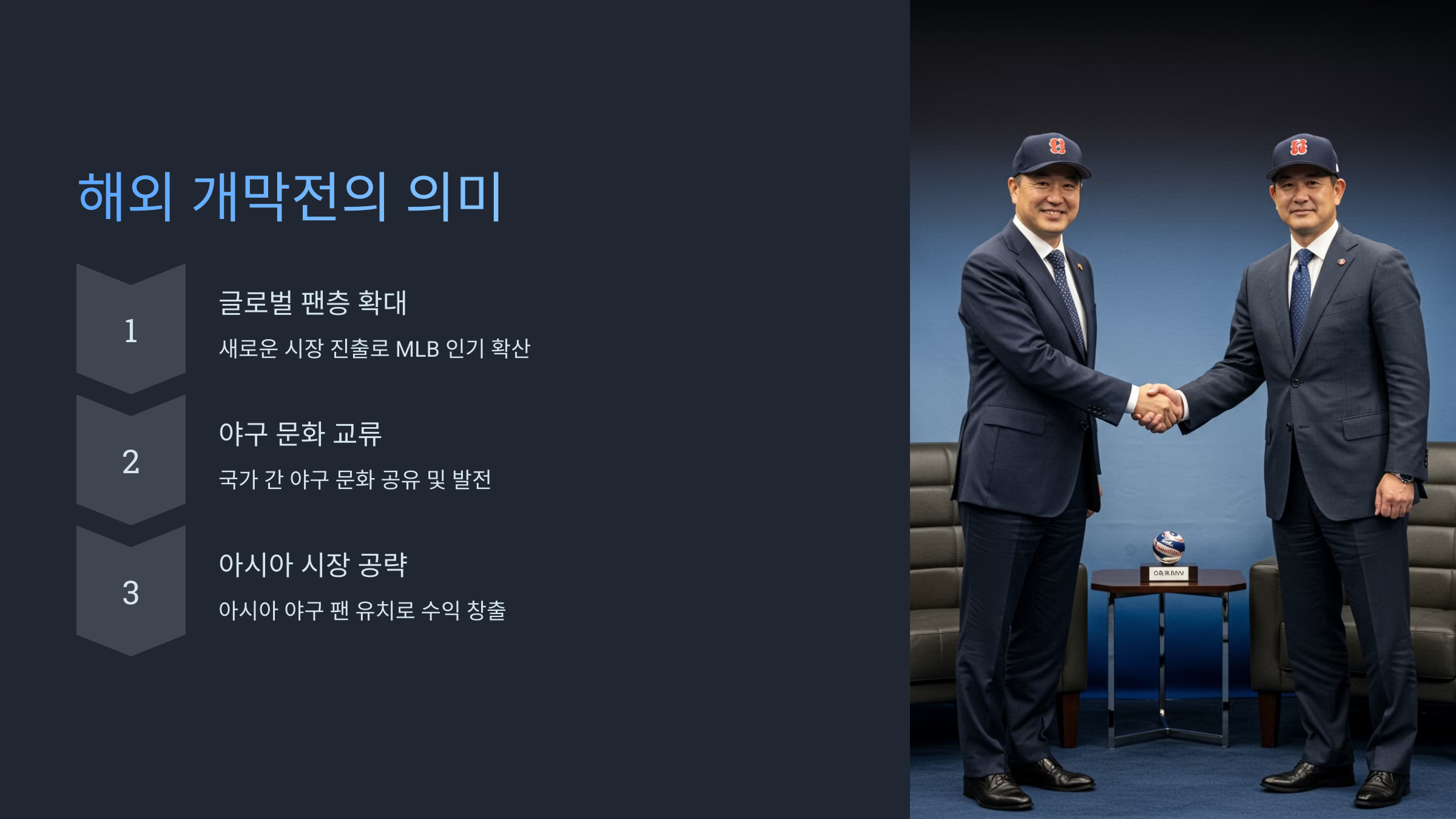 ✔️ MLB 글로벌 시장 확대 – 아시아 팬층 확대 및 중계권 수익 증가 📡