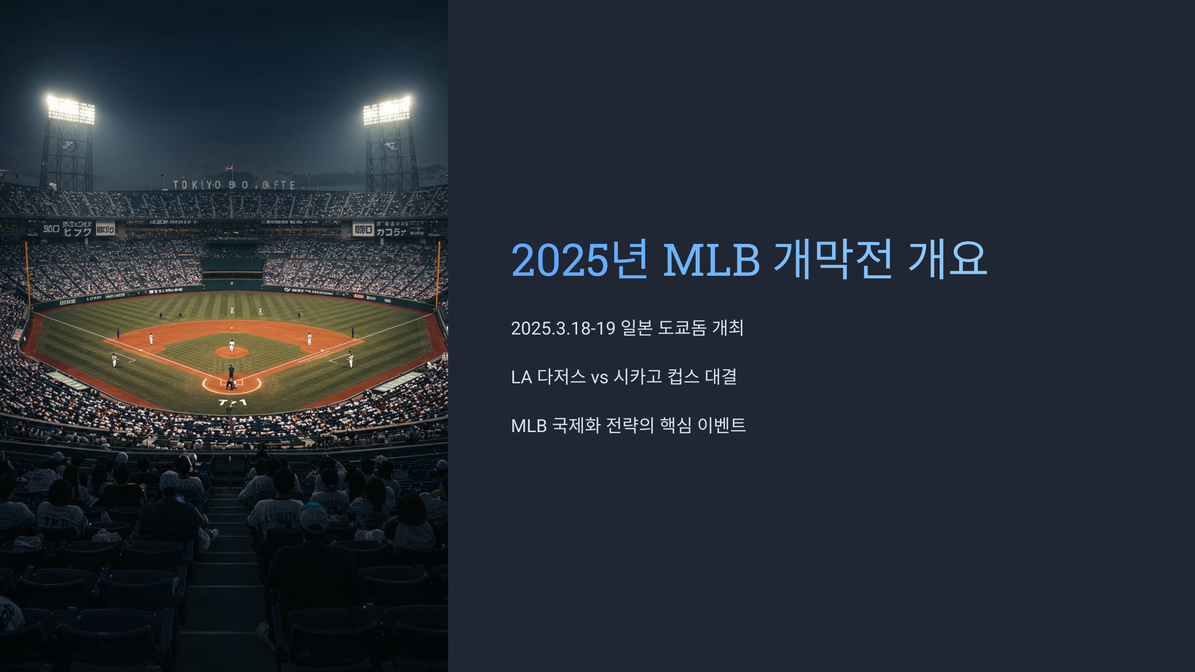 2025년 MLB 개막전이 일본에서 열리는 이유가 궁금하신가요? 🤔 MLB가 해외에서 개막전을 개최하는 것은 단순한 이벤트가 아니라, 전략적인 이유가 있어요!