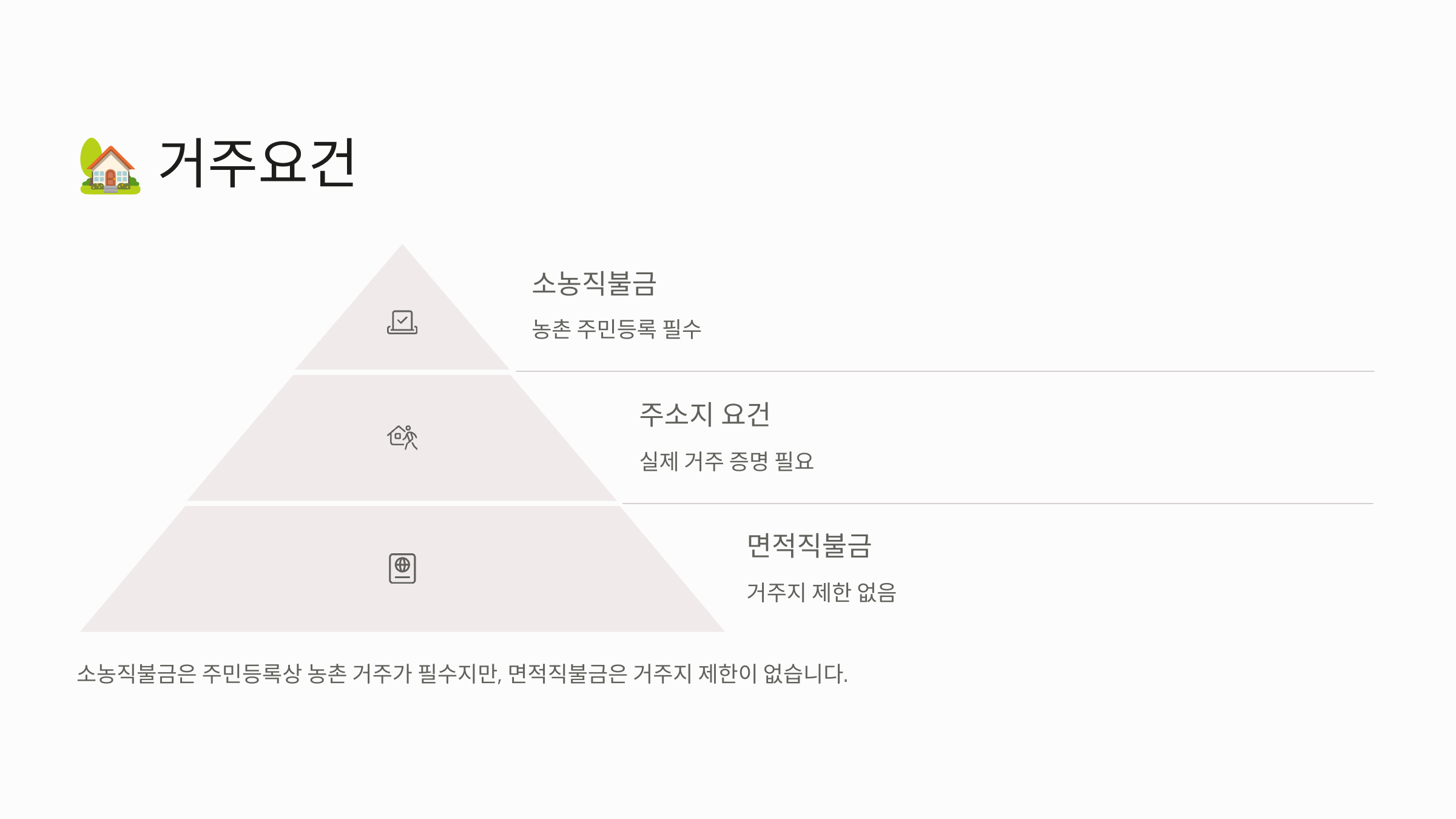 🏡 거주요건 포함 여부 – 소농직불금은 주민등록상 농촌 거주 필요