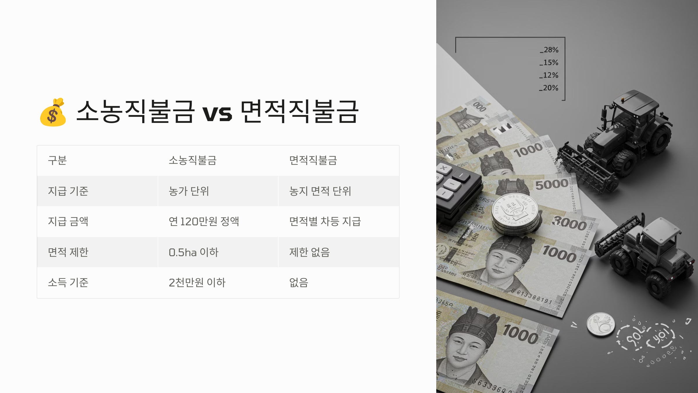 💰 소농직불금 vs 면적직불금 차이점 – 조건별로 받는 금액 다름