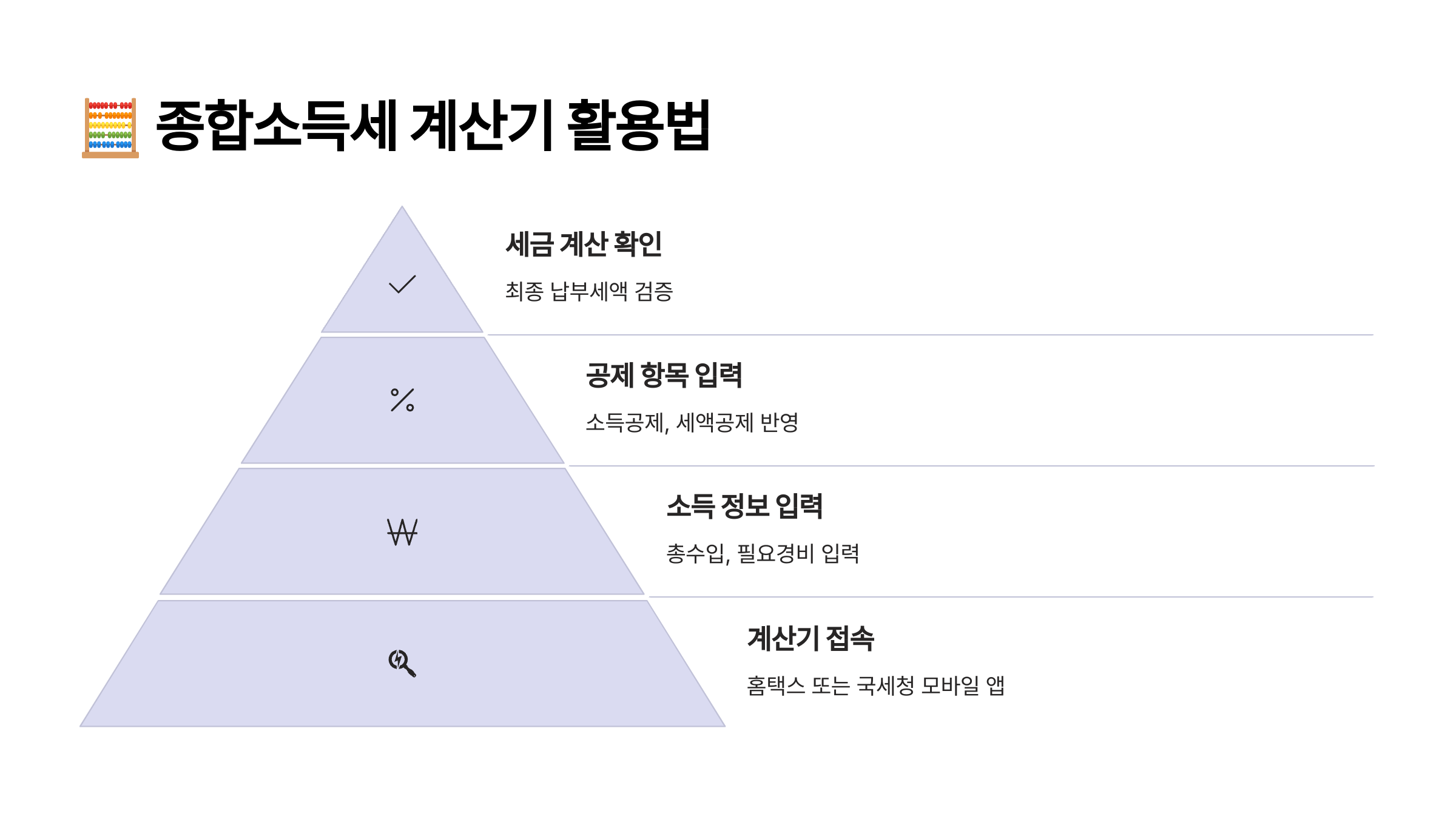 종합소득세 신고 전에 “도대체 내가 얼마나 내야 하지?” 궁금한 분들 많죠. 그런 분들을 위한 필수 도구가 바로 종합소득세 계산기예요. 간단한 항목만 입력해도 예상 세금을 알 수 있어 절세 전략을 짤 수 있어요.