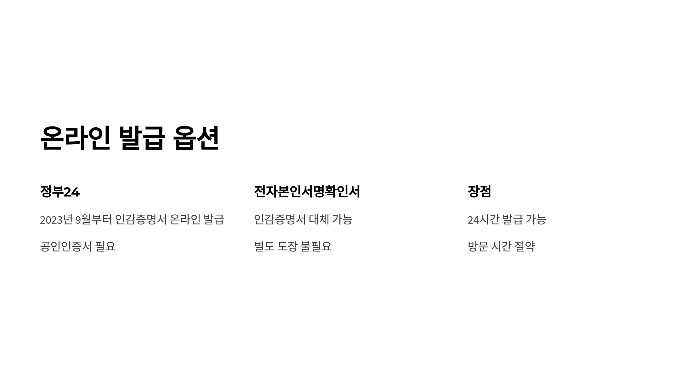| 구분 | 인감증명서 | 전자본인서명확인서 |