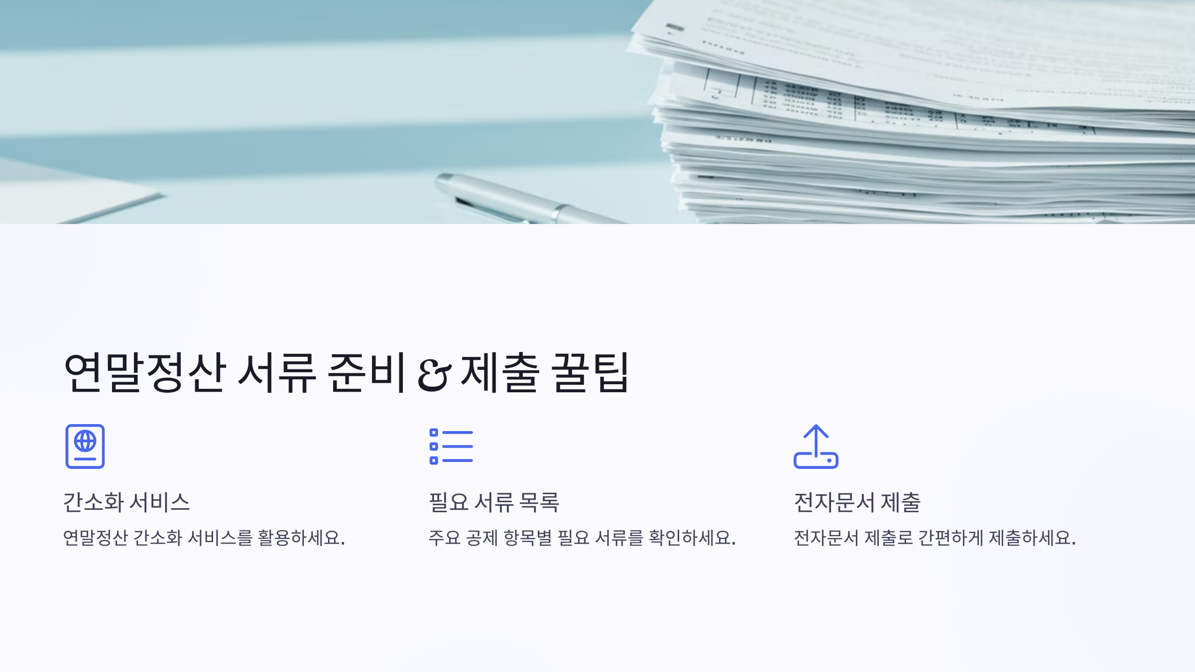 | 📄 연말정산 서류 준비 | 국세청 홈택스에서 소득·세액공제 자료를 다운로드하세요. |