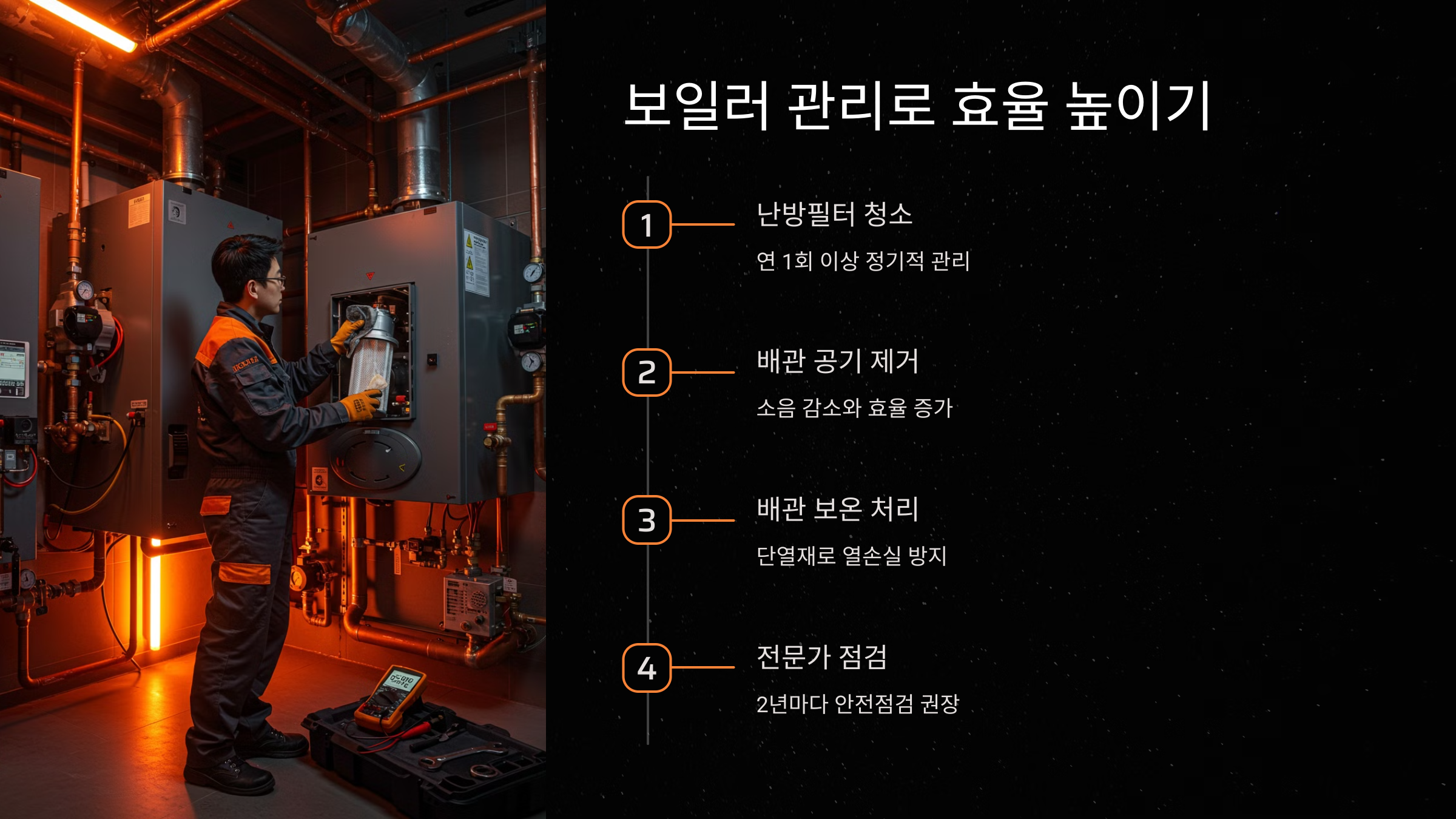 보일러 필터와 배관을 점검하면 난방 효율을 최대 30%까지 높일 수 있어요! 🛠️