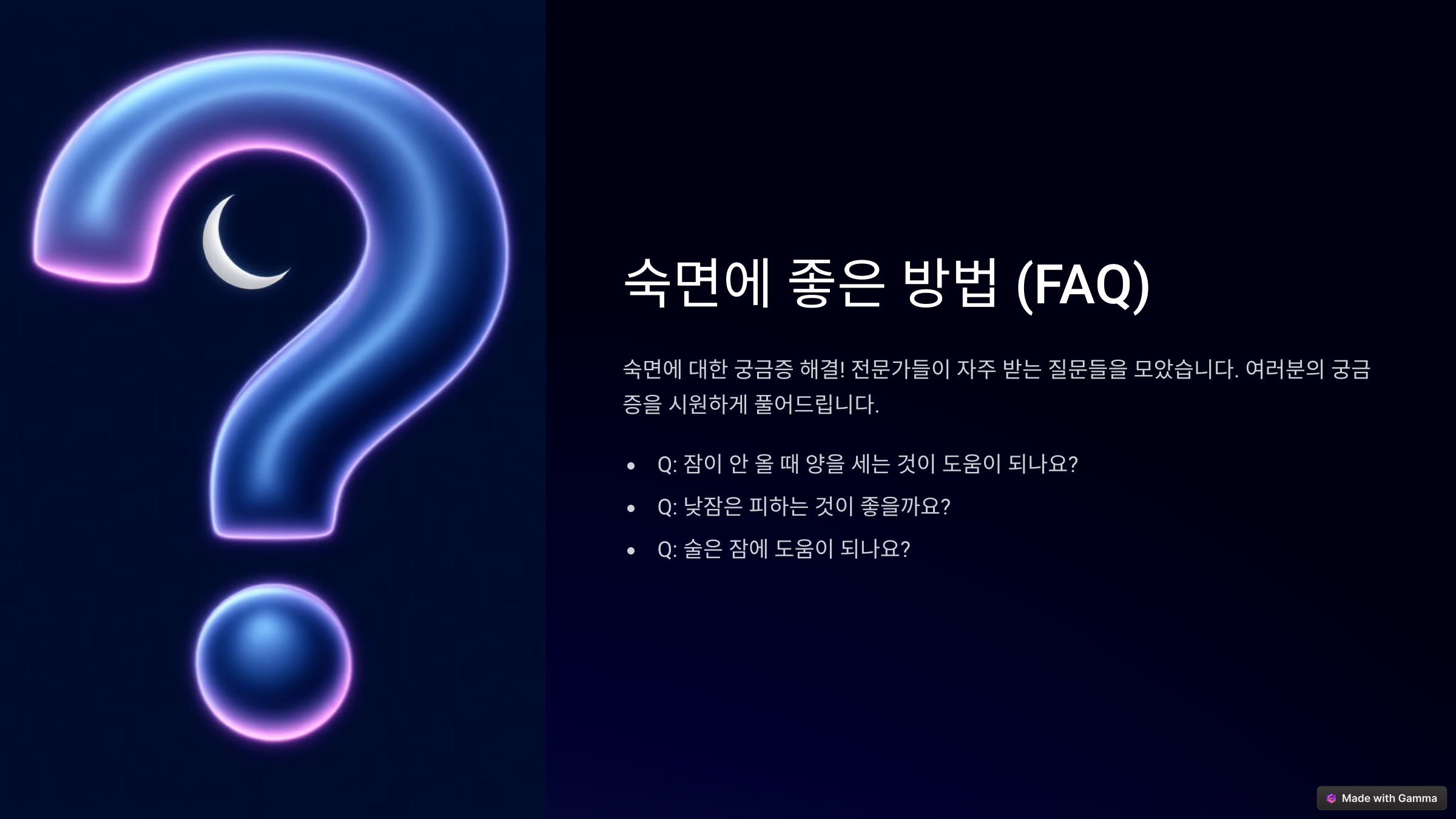 숙면은 건강한 삶의 기본이에요. 작은 습관부터 바꾸면 더 깊고 편안한 잠을 잘 수 있어요. 오늘부터 하나씩 실천해 보세요! 😴