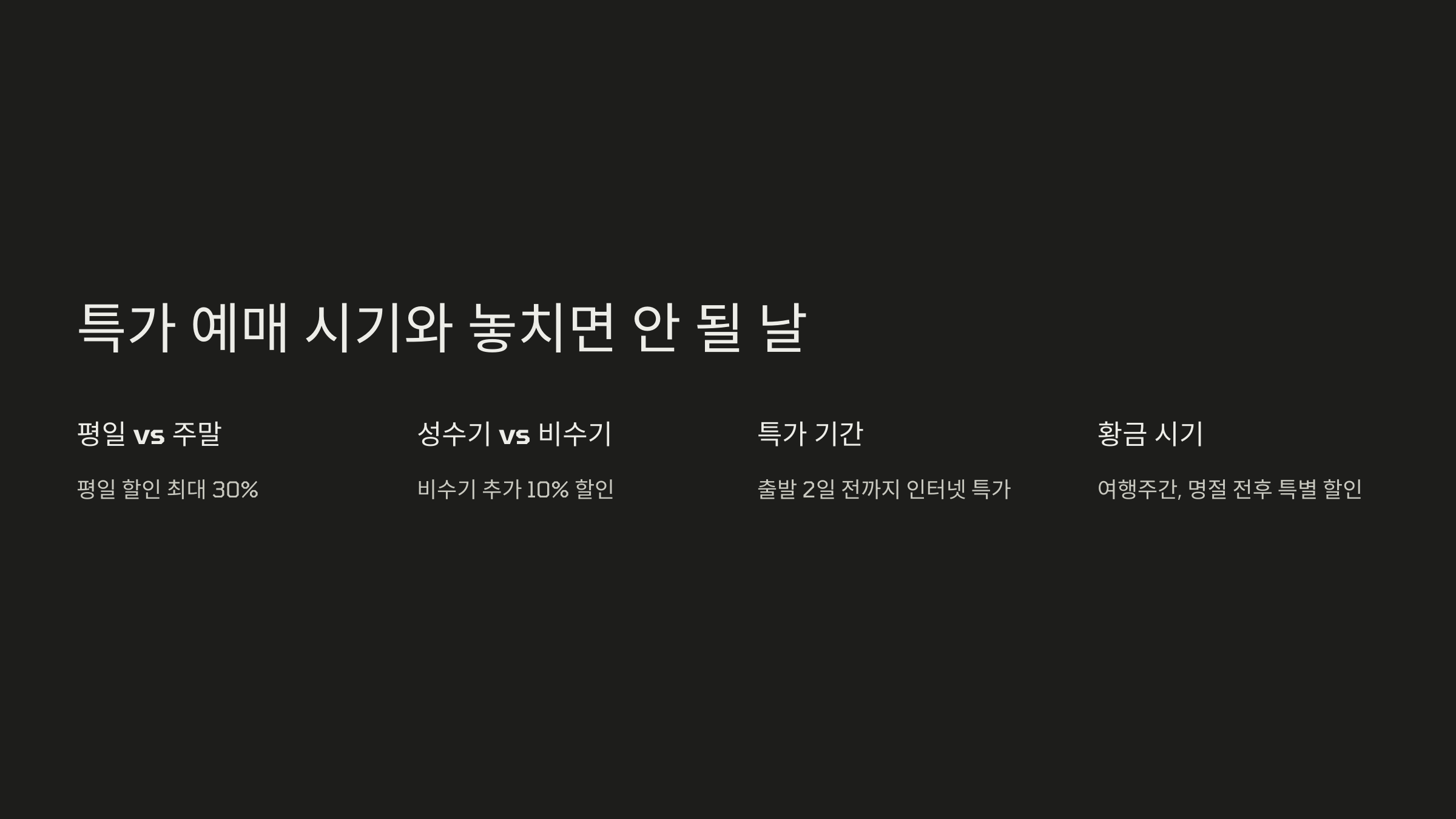 마지막으로, '비수기 및 공휴일 전후 할인'도 알아두세요. 성수기(여름·겨울 방학, 연휴)보다는 평일이나 비수기에 예매하면 훨씬 저렴한 가격에 이용할 수 있어요.