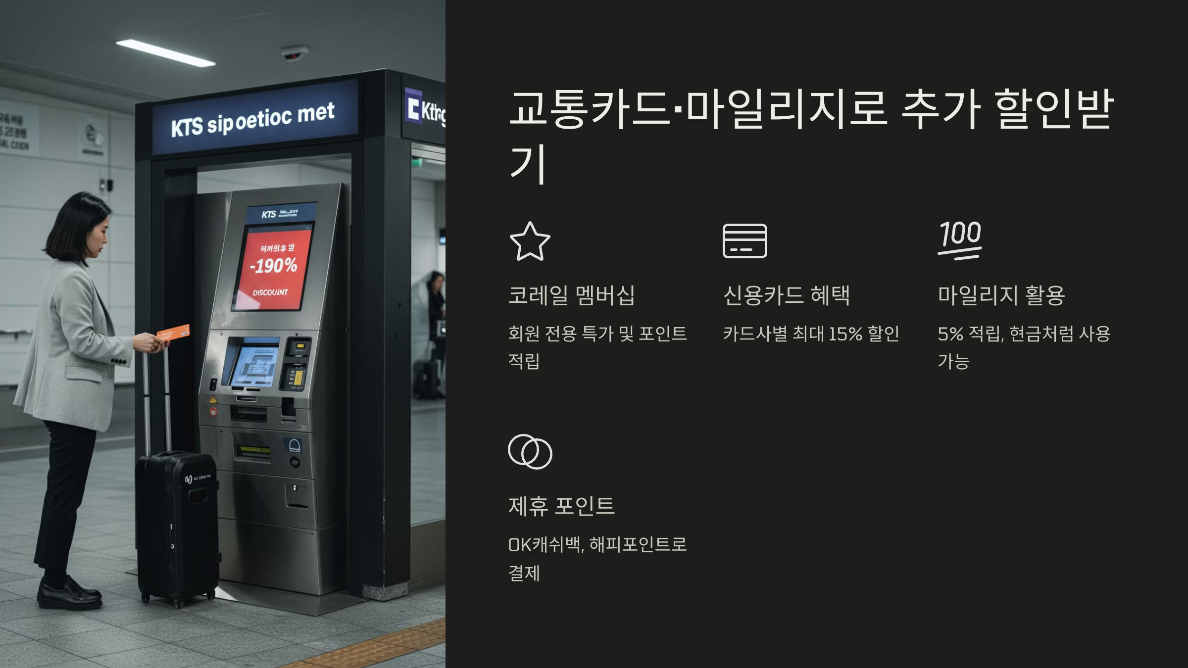 특가 예매부터 연령별 할인, 교통카드 활용법까지 다양한 할인 꿀팁을 정리했어요. 스마트하게 예매해서 여행 경비를 아껴보세요! 🚆💰
