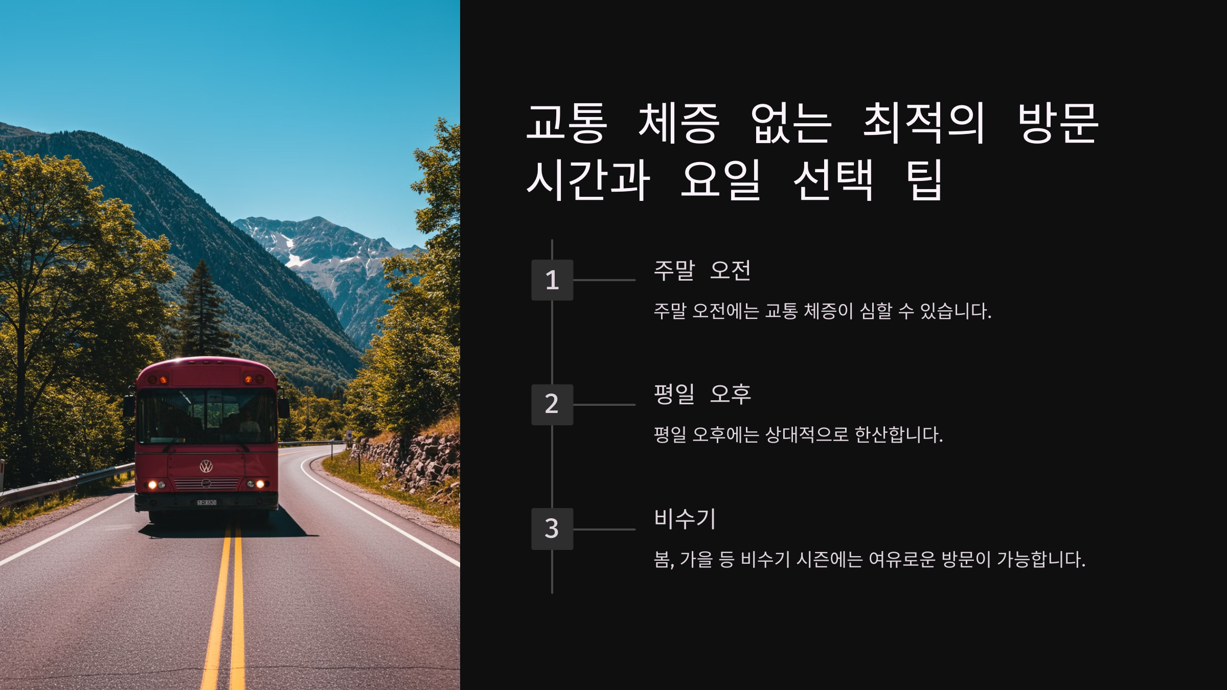 교통 체증 피하는 방문 시간 & 요일 선택 꿀팁