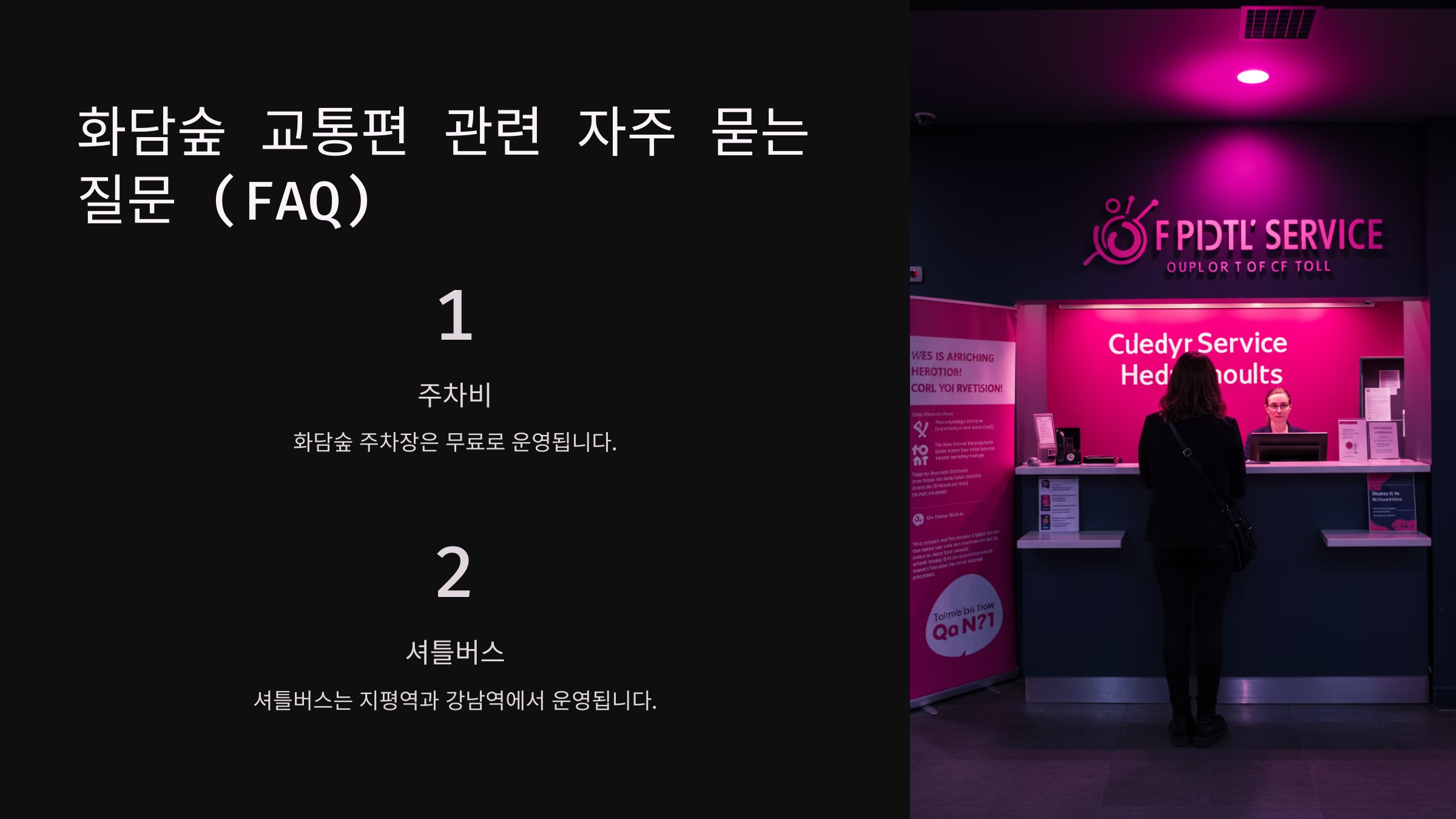 🚍 이동 방법에 대한 모든 정보를 확인했어요! 이제 마지막으로 화담숲 교통편 관련 자주 묻는 질문(FAQ)을 정리해볼게요. 😊