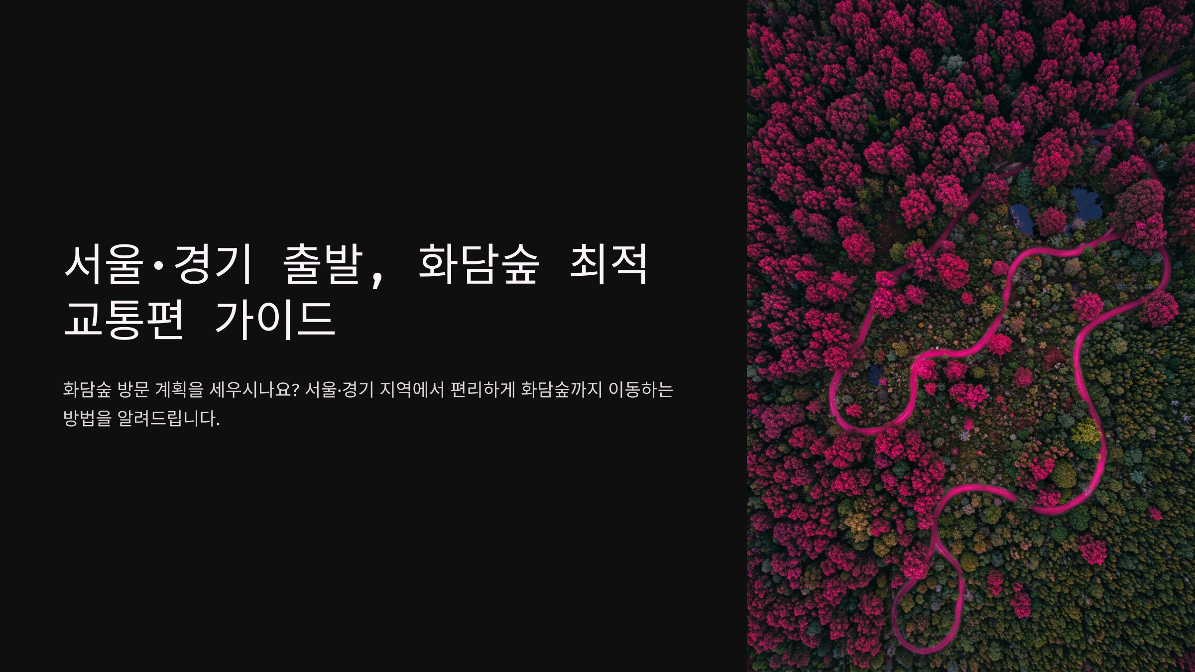| 서울 강남 | 경부고속도로 → 곤지암 IC → 화담숲 | 강남역 → 경강선 곤지암역 → 셔틀버스 |