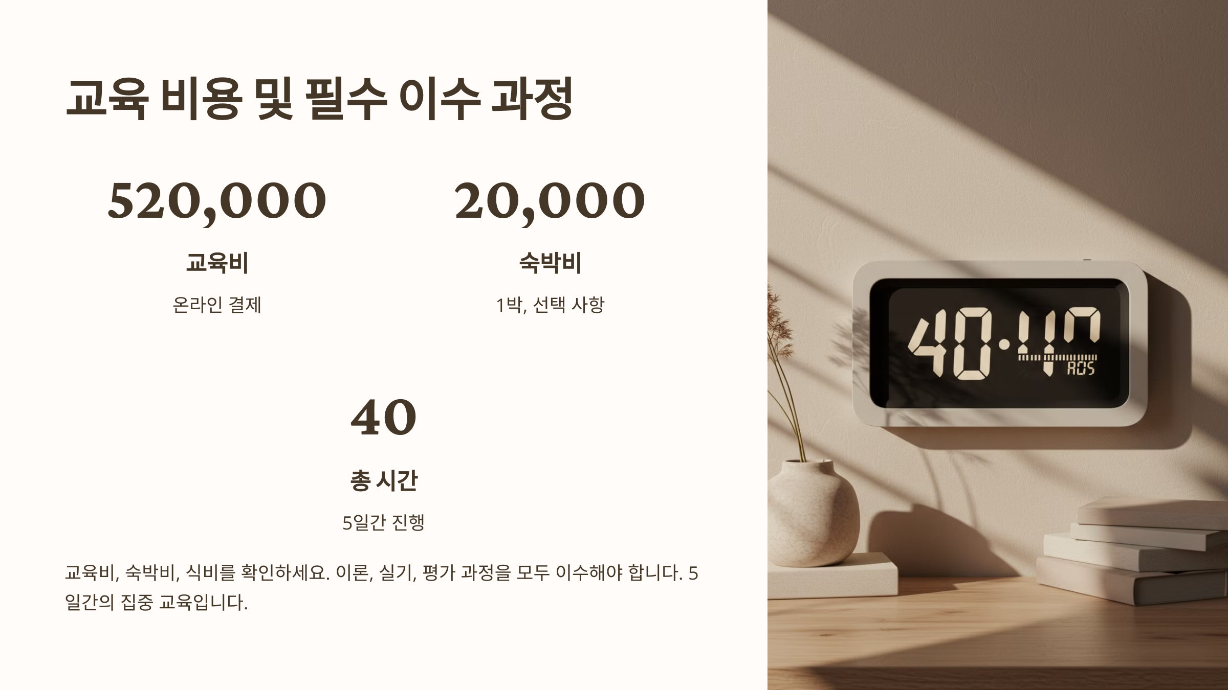 - ⚠️ 3일 교육을 모두 이수해야 수료증 발급 (부분 출석 불가)