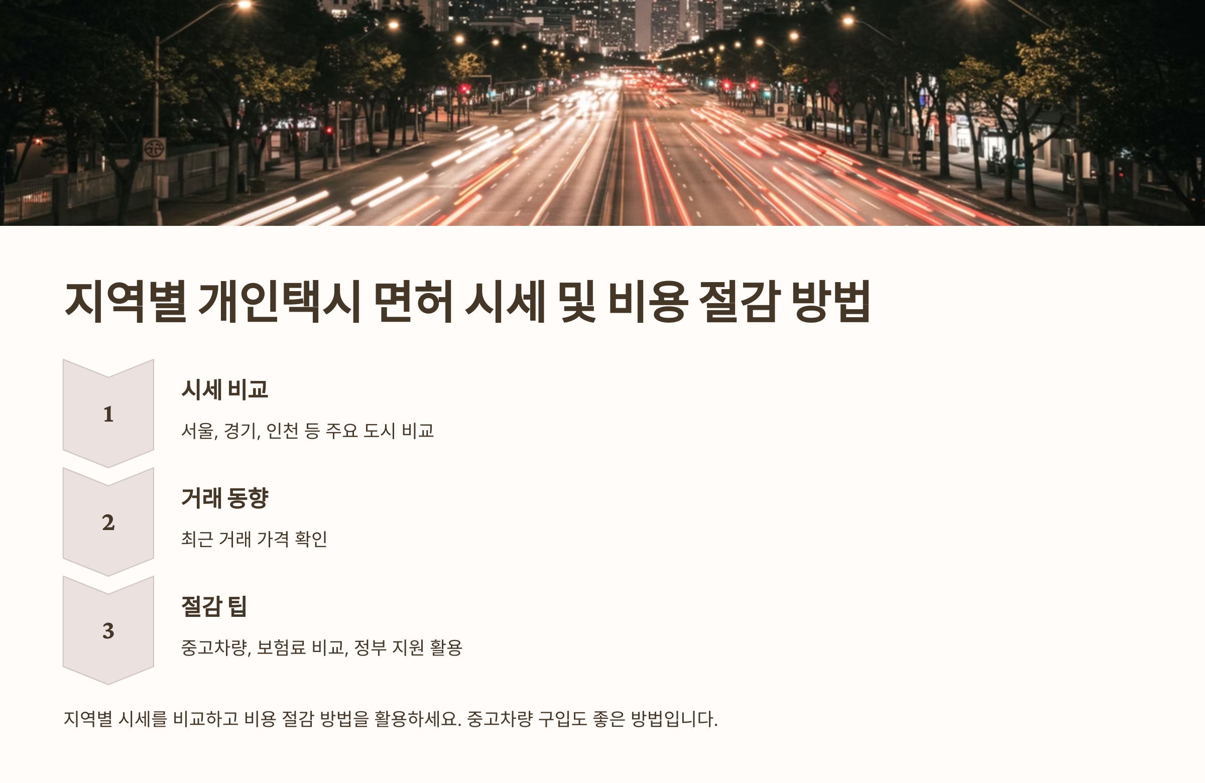 개인택시 면허 시세는 지역별로 다르며, 최근에는 플랫폼 택시 증가와 경기 변화로 인해 가격 변동이 큰 편이에요. ✅