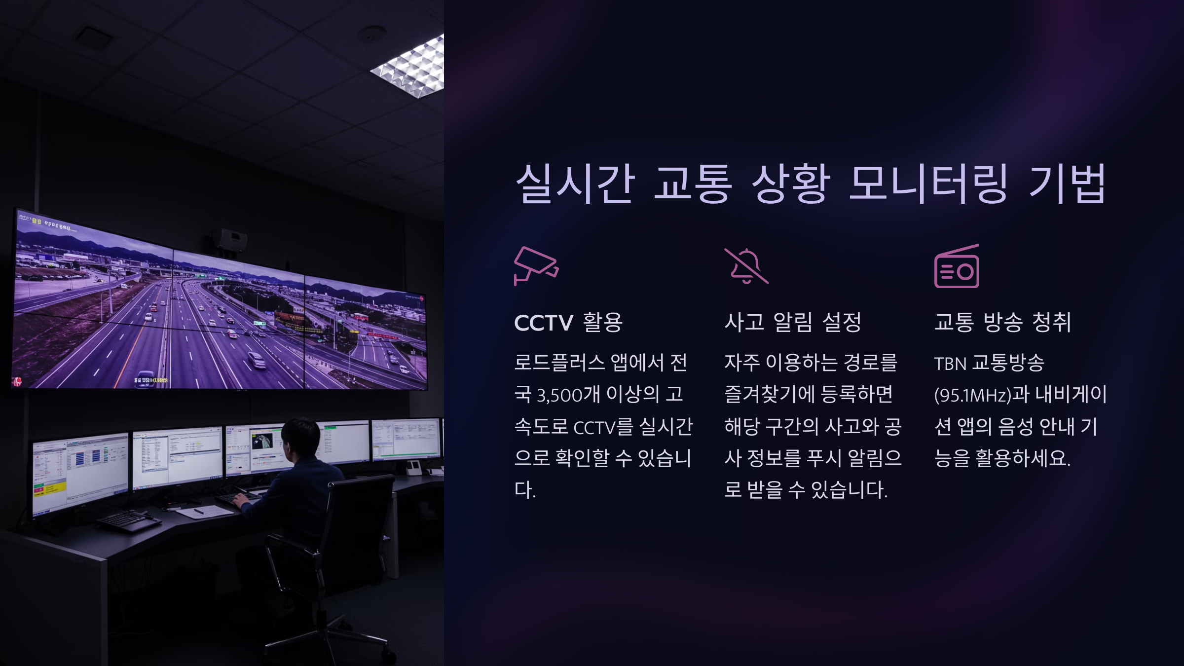 ✔ 로드플러스: 한국도로공사에서 운영하는 서비스로, 고속도로 중심의 실시간 교통상황 및 CCTV 영상을 제공해요.