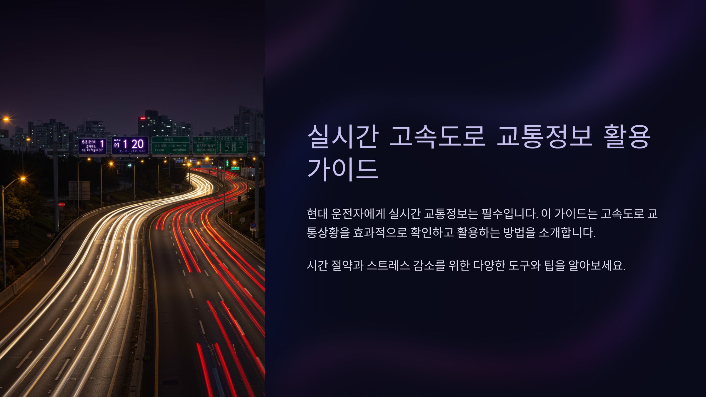 🚦 실시간 교통정보를 제대로 활용하면 도로 위에서 시간을 아끼고 더욱 편안한 운전을 할 수 있어요! 스마트한 운전으로 막힘없이 목적지까지 달려보세요. 🚗💨