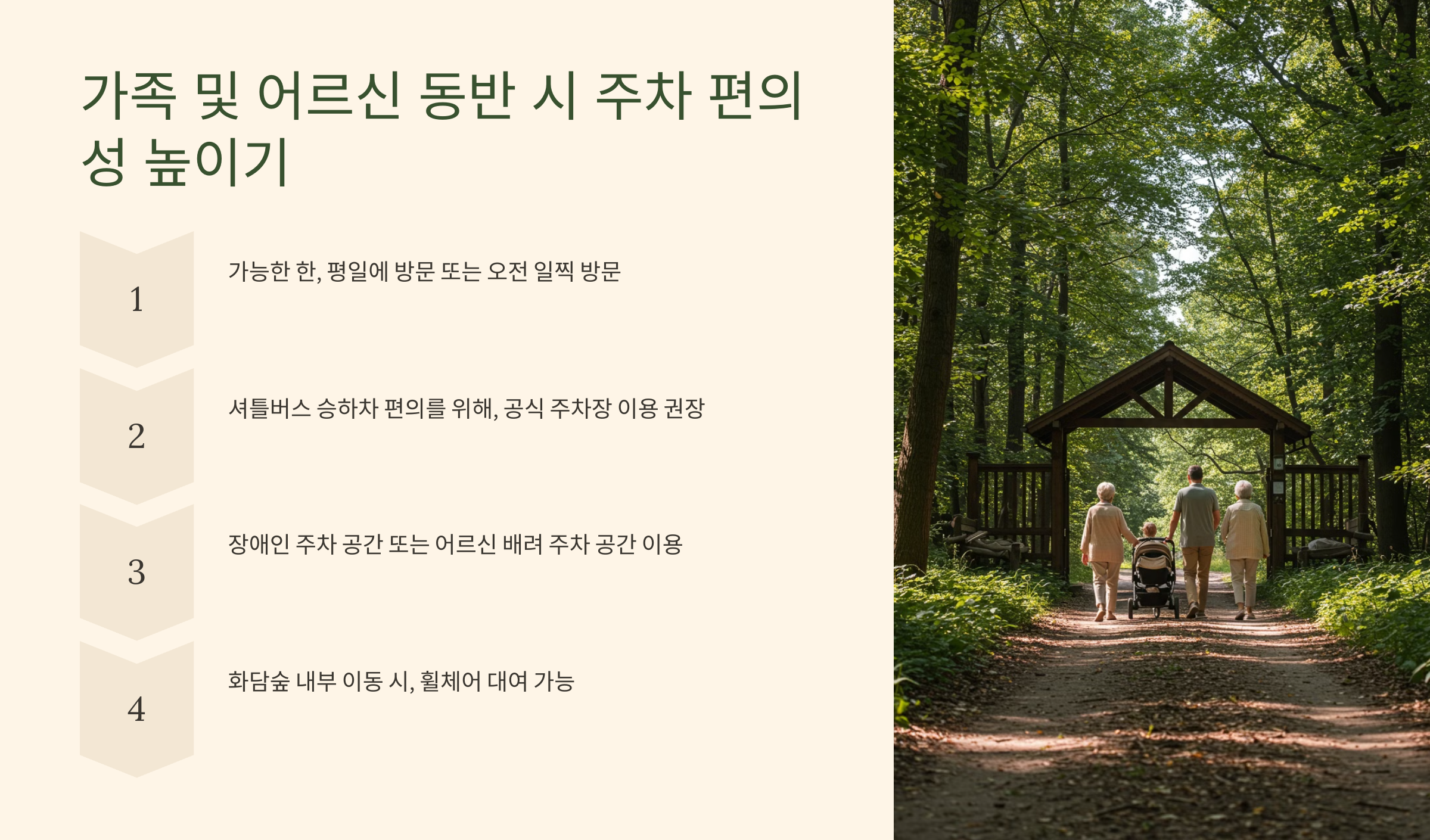 가족 단위 방문객이나 어르신, 유모차를 동반한 경우에는 주차 위치가 더욱 중요해요. 🚗 특히, 화담숲은 경사가 있는 코스가 많기 때문에 입구와 가까운 주차장을 이용하는 것이 편리해요.