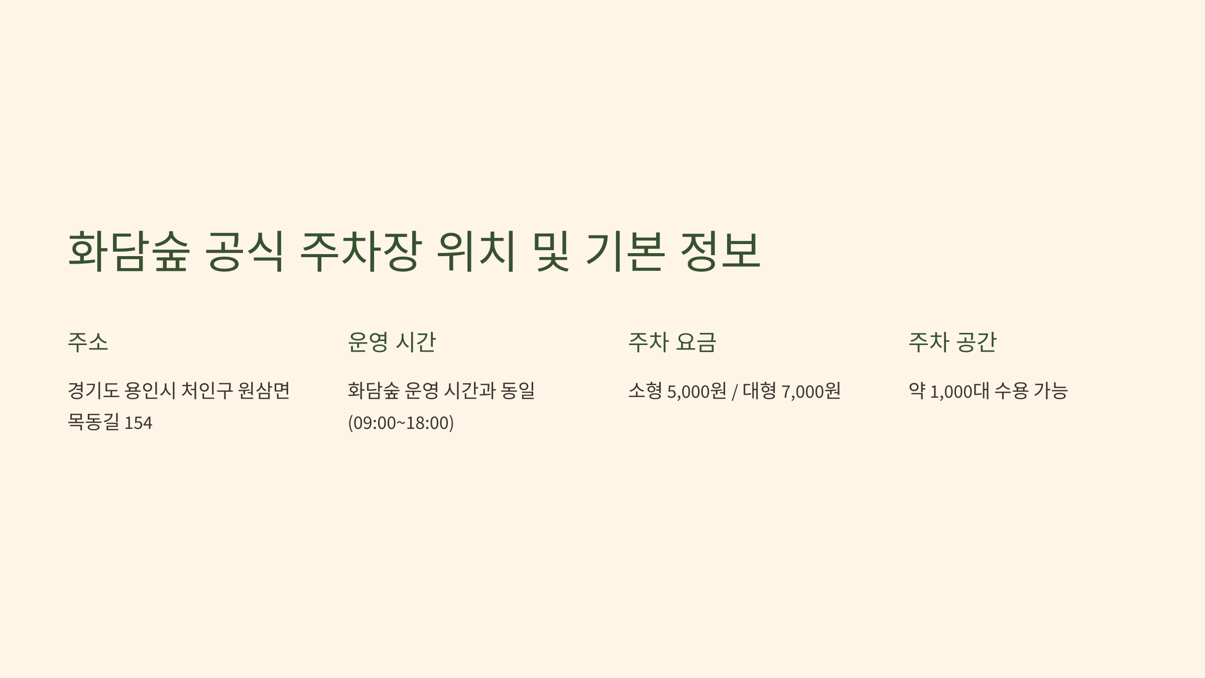 이제 화담숲 주차에 대한 모든 정보를 알게 되었어요! 🚗💕