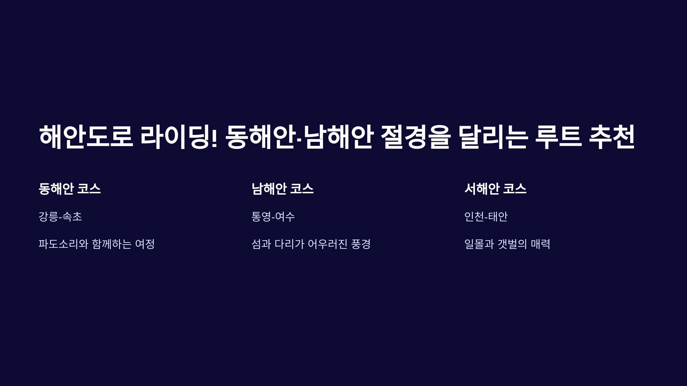 🌊 해안도로 라이딩! 동해안·남해안 절경을 달리는 루트 추천