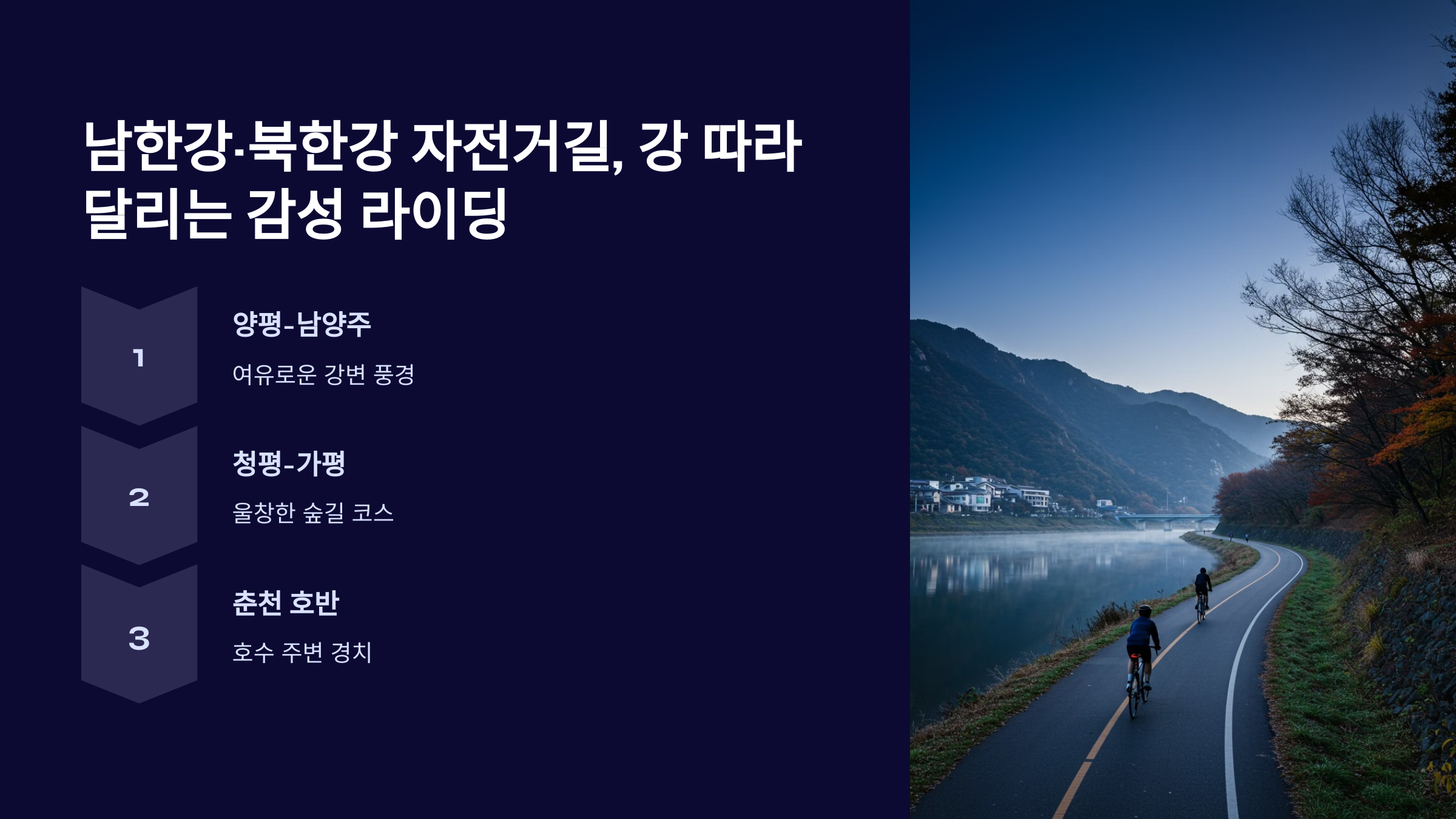 다음으로, 남한강과 북한강을 따라 달리는 감성 라이딩 코스를 알아볼까요? 🚴♂️🌊