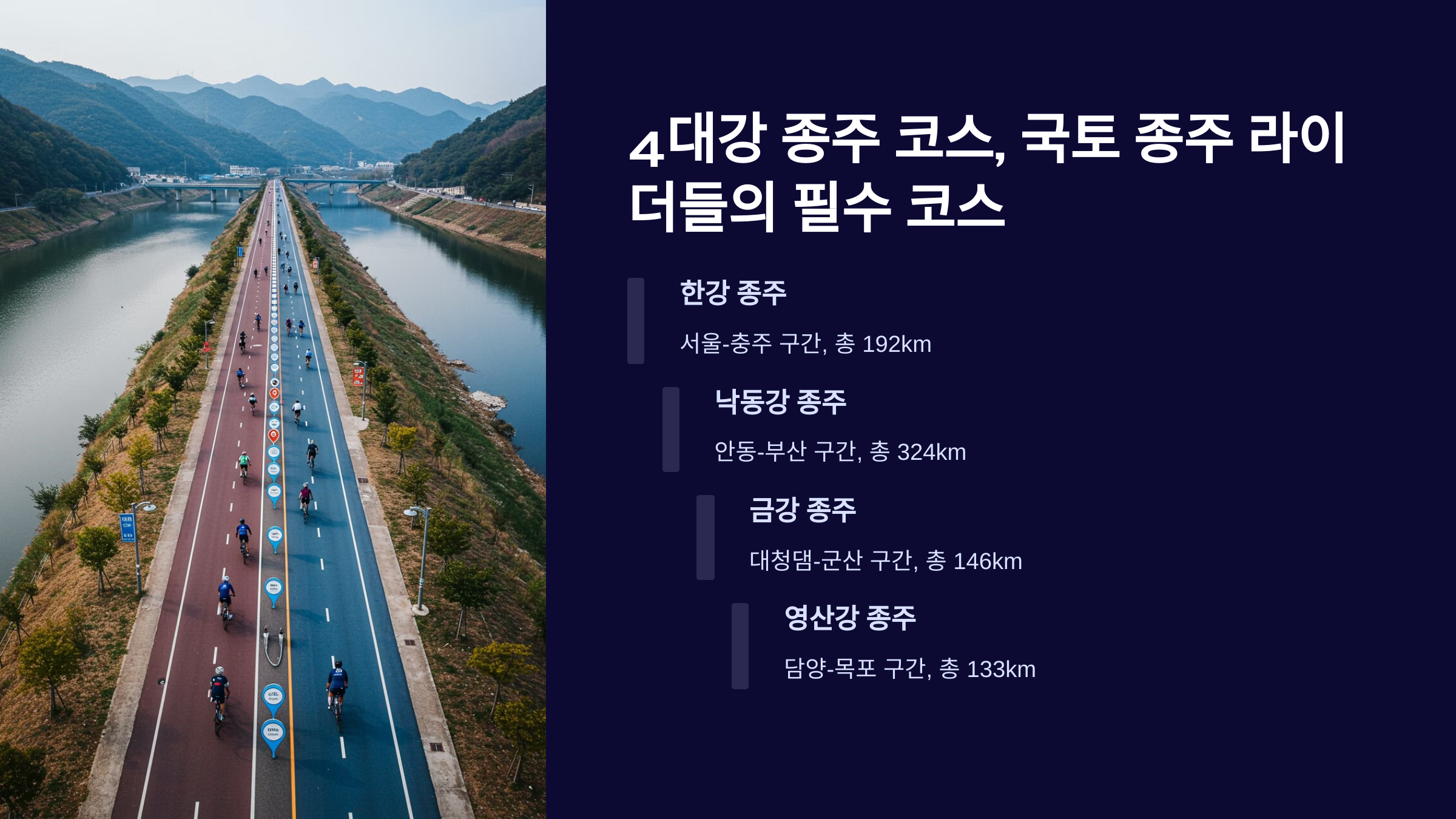 다음으로, 국토 종주 라이더들이 꼭 가봐야 할 4대강 종주 코스를 알아볼까요? 🚴♂️🇰🇷