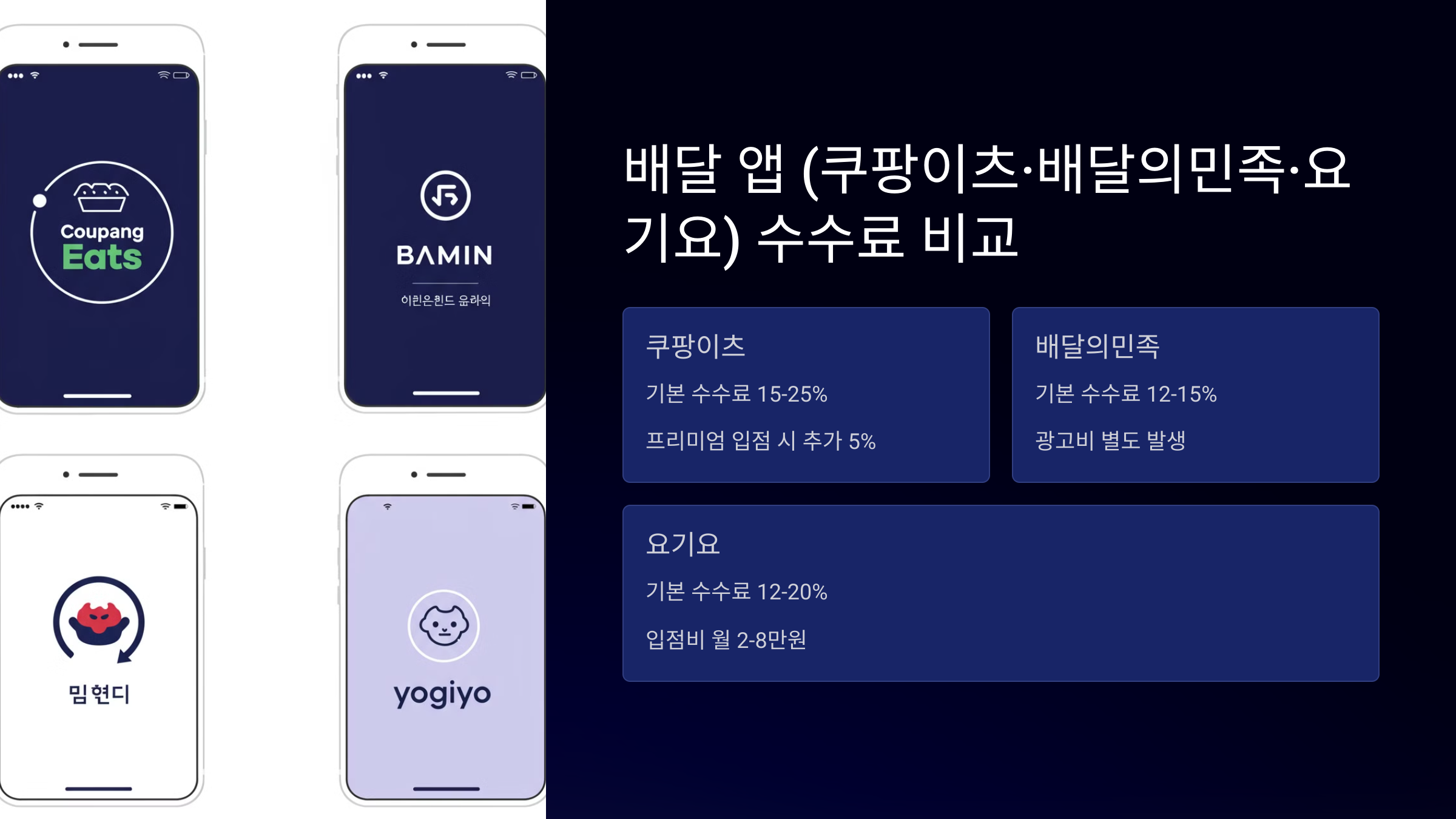 📊 배달 앱 (쿠팡이츠·배달의민족·요기요) 수수료 비교