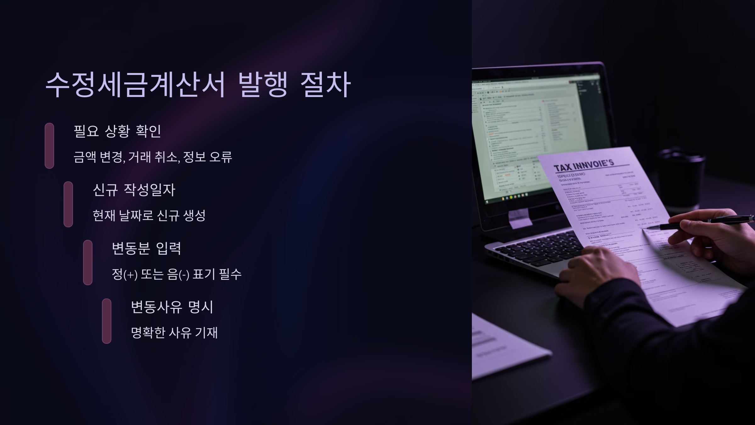 - ✅ 공급받는 자에게 즉시 통보 – 수정된 세금계산서 전달