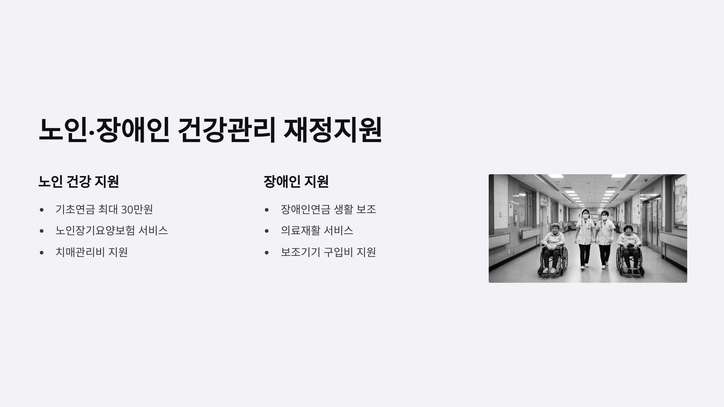 ⚕️ 노인·장애인·의료취약계층 건강관리 재정지원 강화